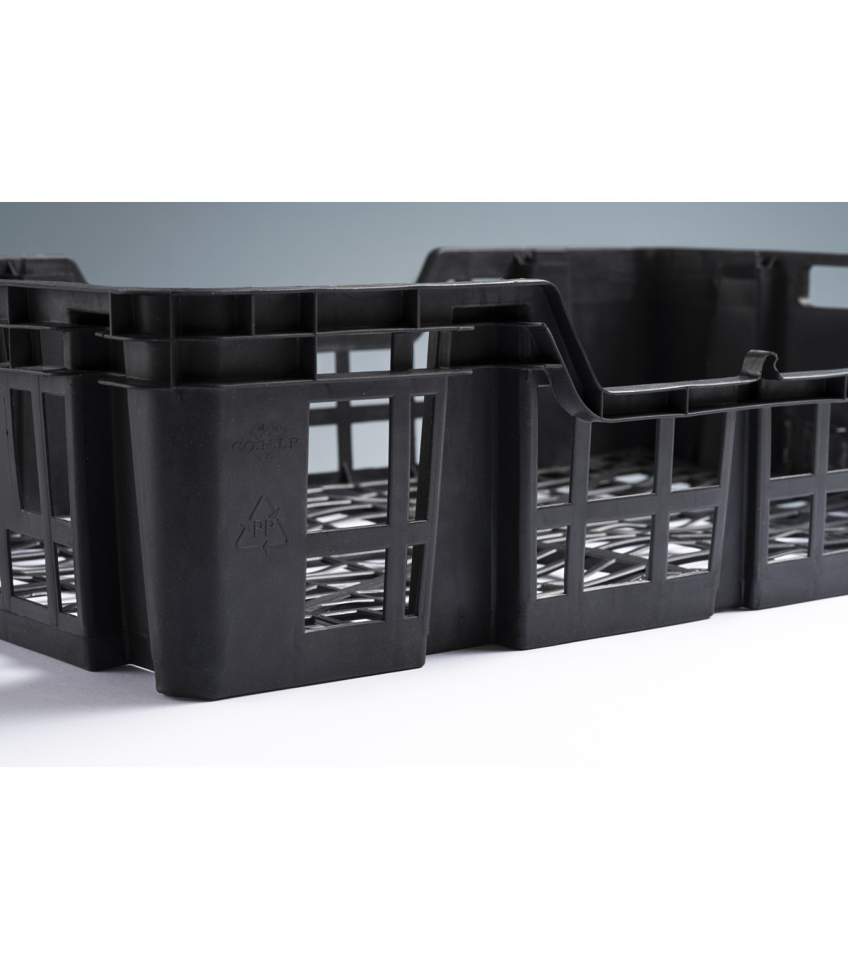 La cassetta Perugia nera è particolarmente indicata ed utilizzata nel settore ortofrutticolo. Può essere impilata, lavata e riutilizzata innumerevoli volte e la tipologia della maglia permette la corretta areazione del prodotto contenuto evitando la formazione di muffe e batteri. Grazie alla sua impilabilità, ogni confezione riesce a contenere 300 cassette Perugia nera, riducendo gli spazi e ottimizzando il trasporto.
